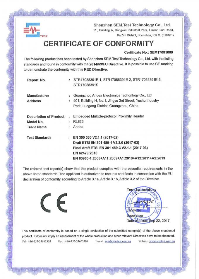 RL866 is a HF RFID reader / writer which supports ISO15693, ISO18000-3M3 and ISO14443A/B. With anti-collision algorithm characteristic, optional USB and RS232 communication interface, slim PCB board, Keyboard Emulation function (KEMU), it could be easily embedded in many kinds of machine. Now RL866 PCB RFID reader / writer is popular in many abroad countries, CE certification will be helpful to our clients in Europe to enlarge their market share smoothly.